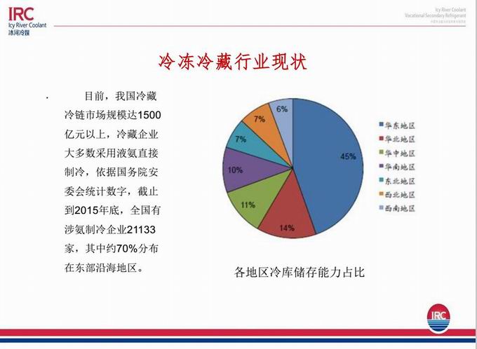 2016年9月23日上午,白松泉董事長在南京維景國際大酒店冷鏈裝備與技術(shù)專題研討會上分享了冷庫建設(shè)與改造優(yōu)化解決方案,并向各位同仁推廣介紹一種新型載冷劑---冰河冷媒!