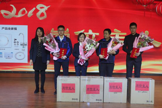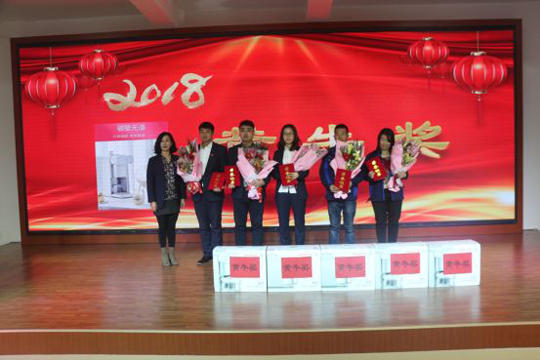 接下來全體員工針對各個評比進行投票,并由領導頒獎表彰。此次頒發(fā)的獎項有:2018度衛(wèi)生評比獎、2018年度學習獎、2018年度優(yōu)秀員工、2018年度忠誠獎、2018年度團隊銷售冠軍、人均銷售冠軍、個人銷售冠軍和銷售亞軍和季軍、2018年度運輸先鋒車輛和優(yōu)秀司機、2018年度業(yè)務能手、2018年度崗位主人、2018年度黃牛獎。