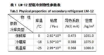 此優(yōu)化方案中所用載冷劑為冰河冷媒科技(朝陽(yáng))有限公司有限專利產(chǎn)品冰河冷媒,其特點(diǎn)是用量省、載冷能力強(qiáng)、防銹性能突出、無(wú)毒、無(wú)閃點(diǎn)解決了傳統(tǒng)載冷劑存在的問(wèn)題,使設(shè)備使用壽命至15年以上。相關(guān)物性參數(shù)對(duì)比見(jiàn)表1。