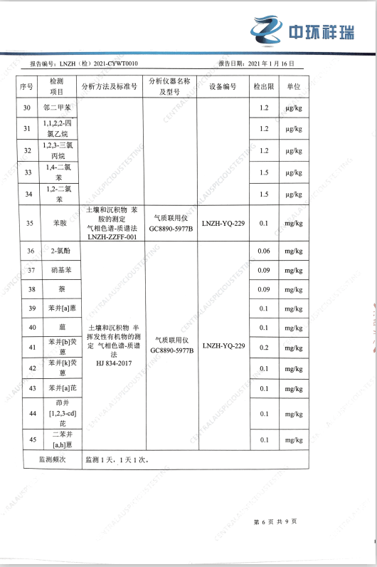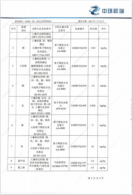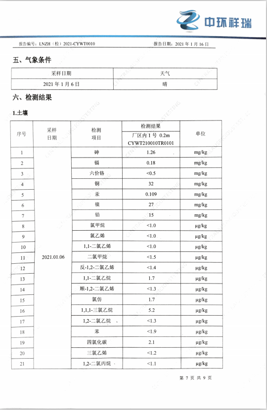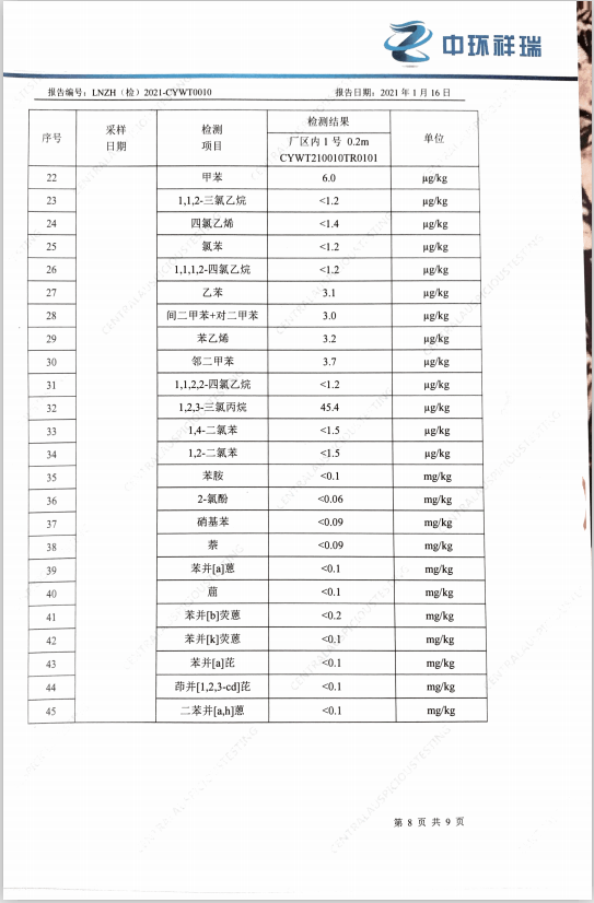 朝陽光達(dá)化工有限公司西廠區(qū)土壤檢測報(bào)告公示