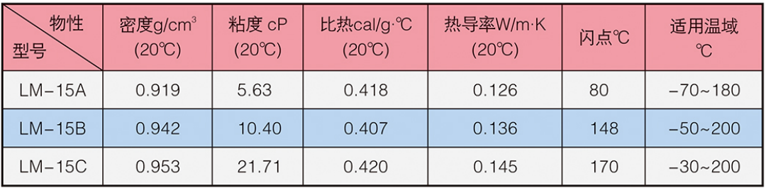 LM-15系列冰河冷媒由聚硅氧烷改性而成。外觀為無(wú)色或淺色液體,不溶于水。具有生理惰性、良好的化學(xué)穩(wěn)定性、凝固點(diǎn)低、使用壽命長(zhǎng)等特點(diǎn),對(duì)以金屬為代表的眾多材料,幾乎不會(huì)產(chǎn)生不良的影響,可應(yīng)用于醫(yī)藥、化工、新能源等領(lǐng)域的制冷系統(tǒng)。