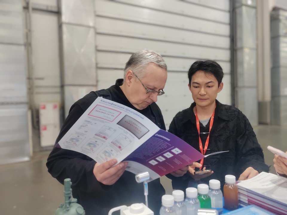 展會期間,冰河冷媒憑借低冰點(diǎn)、高導(dǎo)熱性、化學(xué)穩(wěn)定性強(qiáng)的產(chǎn)品優(yōu)勢,以及無腐蝕、寬溫域、環(huán)保安全的核心特性,成功吸引眾多俄羅斯及東歐制藥企業(yè)駐足咨詢,團(tuán)隊(duì)人員針對合成控溫、低溫保存、精準(zhǔn)溫控等應(yīng)用場景,提供定制化技術(shù)解答,充分展現(xiàn)產(chǎn)品在解決傳統(tǒng)載冷劑腐蝕設(shè)備、效能低下等痛點(diǎn)上的顯著成效,助力制藥企業(yè)實(shí)現(xiàn)降本增效與合規(guī)生產(chǎn)的雙重目標(biāo)。